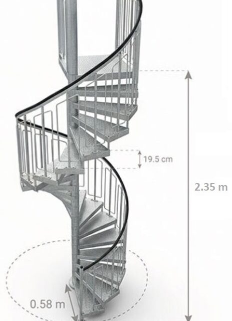 🌀 Escalier hélicoïdal int/ext en acier galvanisé Ø140 – H.max. 2,35 m
